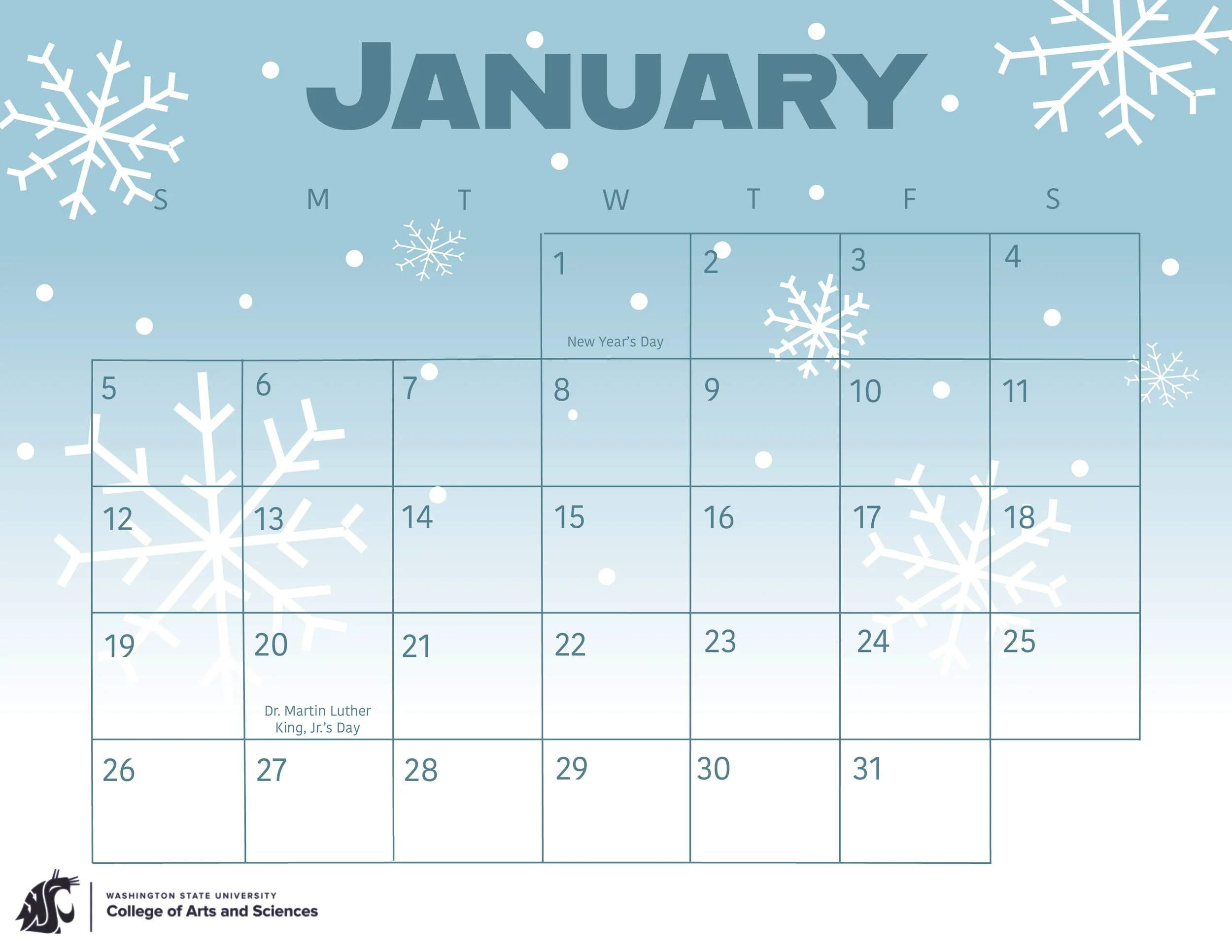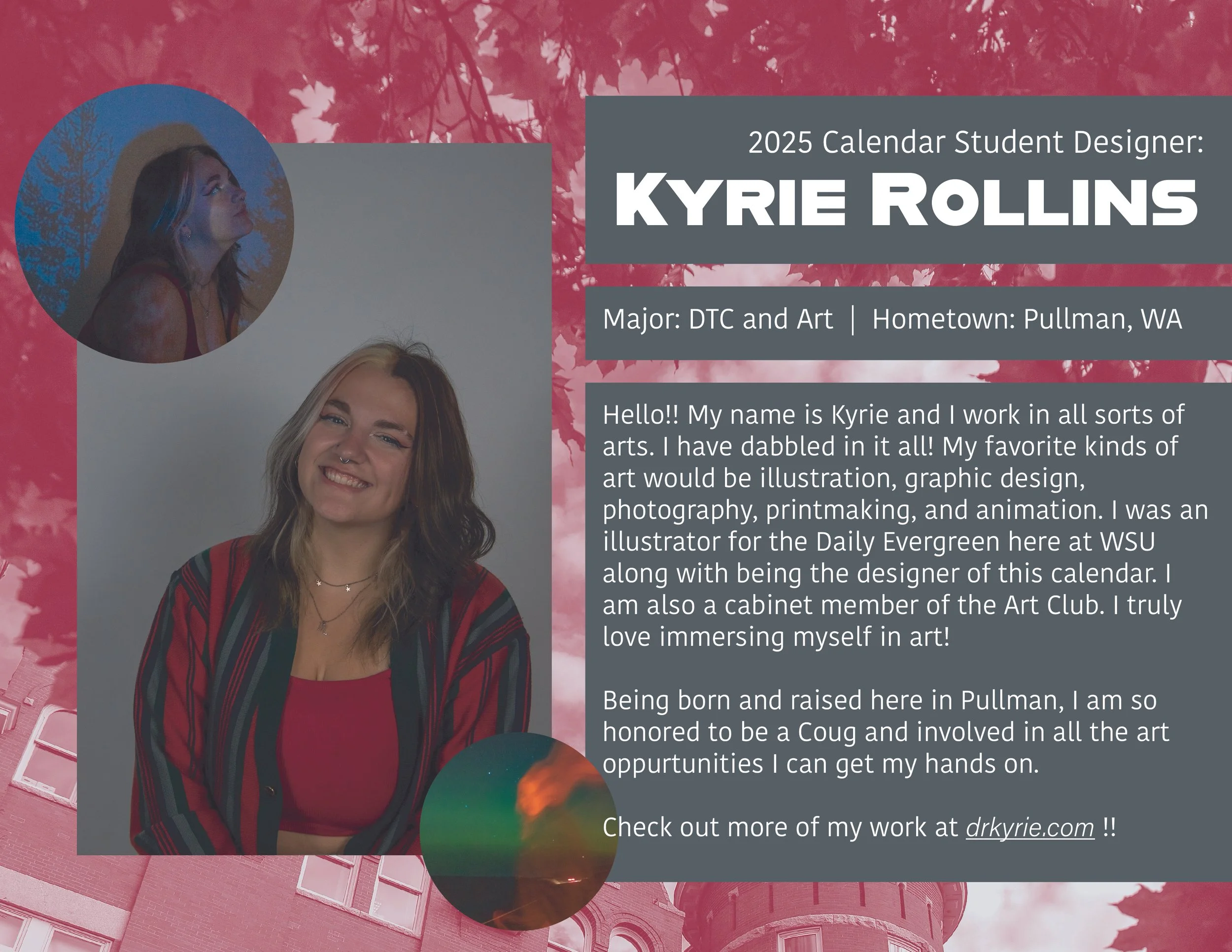 Was hired to design the 2025 College of Arts and Sciences Calendar for Washington State University.
